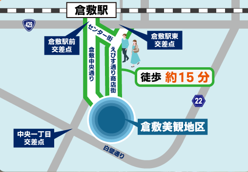 しかも!道中には「倉敷センター街」「えびす通商店街」「本通り商店街」が美観地区まで連なっており、様々なお店を見ながら移動することができます。