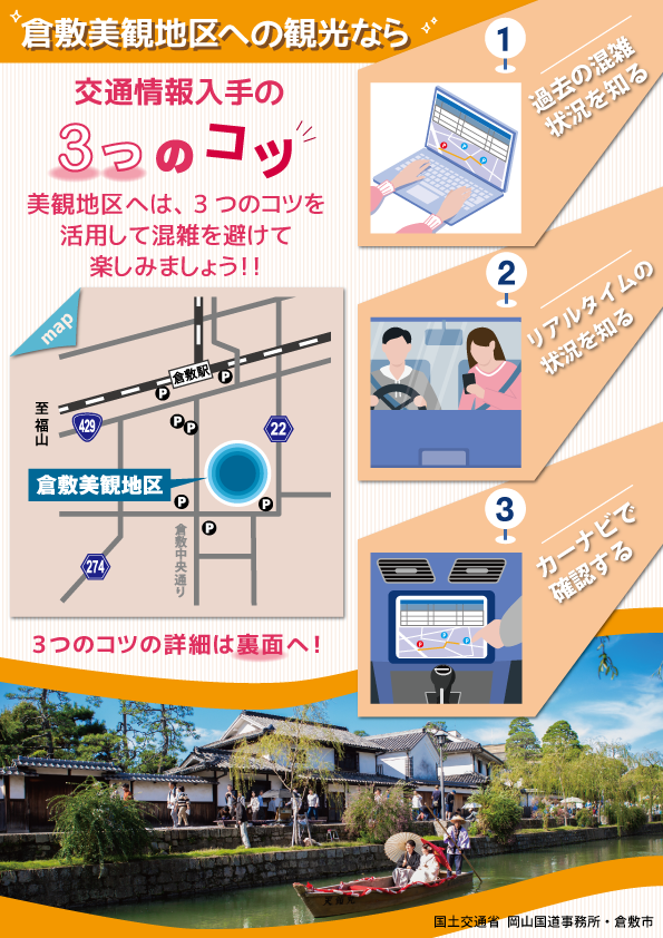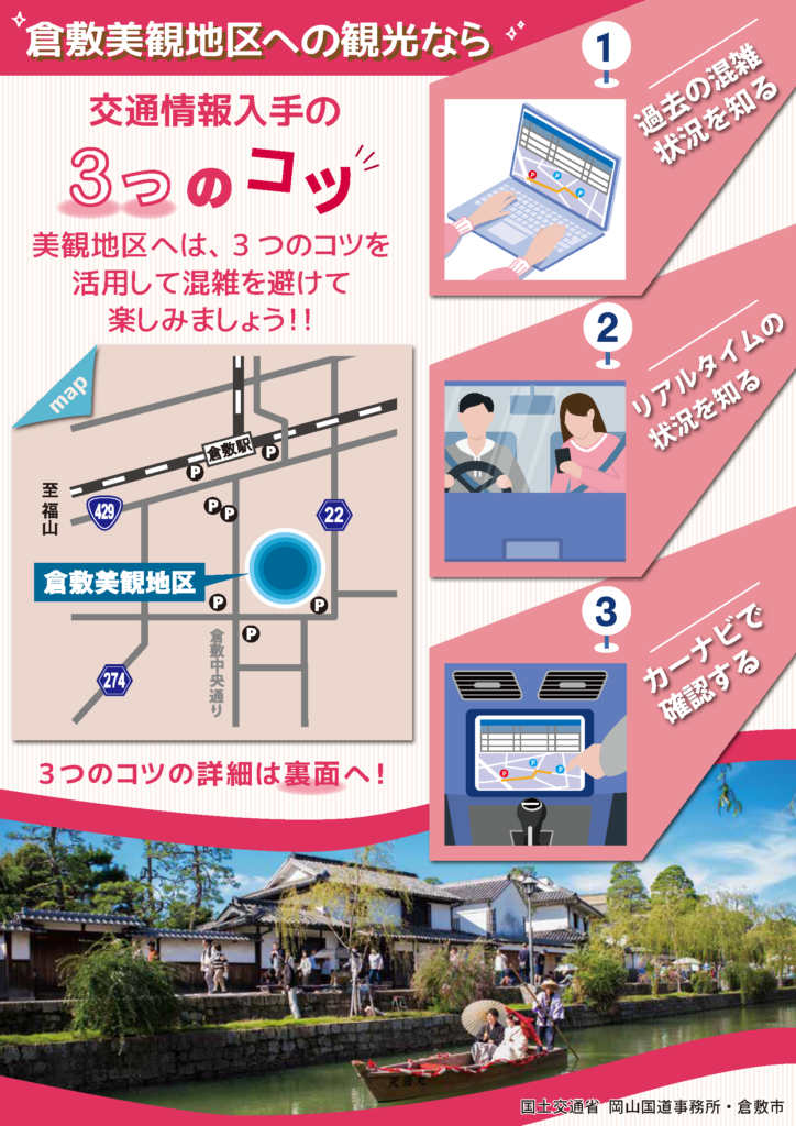 混雑しがちな倉敷美観地区までスムーズに移動する秘訣を2つご紹介いたします。
